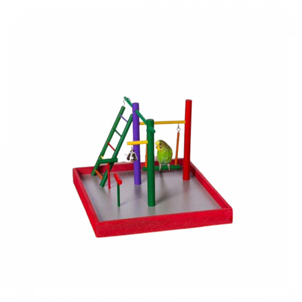 - يتم تضمين سلم ، أرجوحة وجرس آمن للطيور كما هو موضح