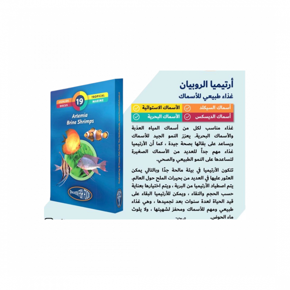 • الأرتيميا مناسبة لكل من أسماك المياه العذبة والأسماك البحرية. من أجل ضمان البقاء الجيد والنمو .